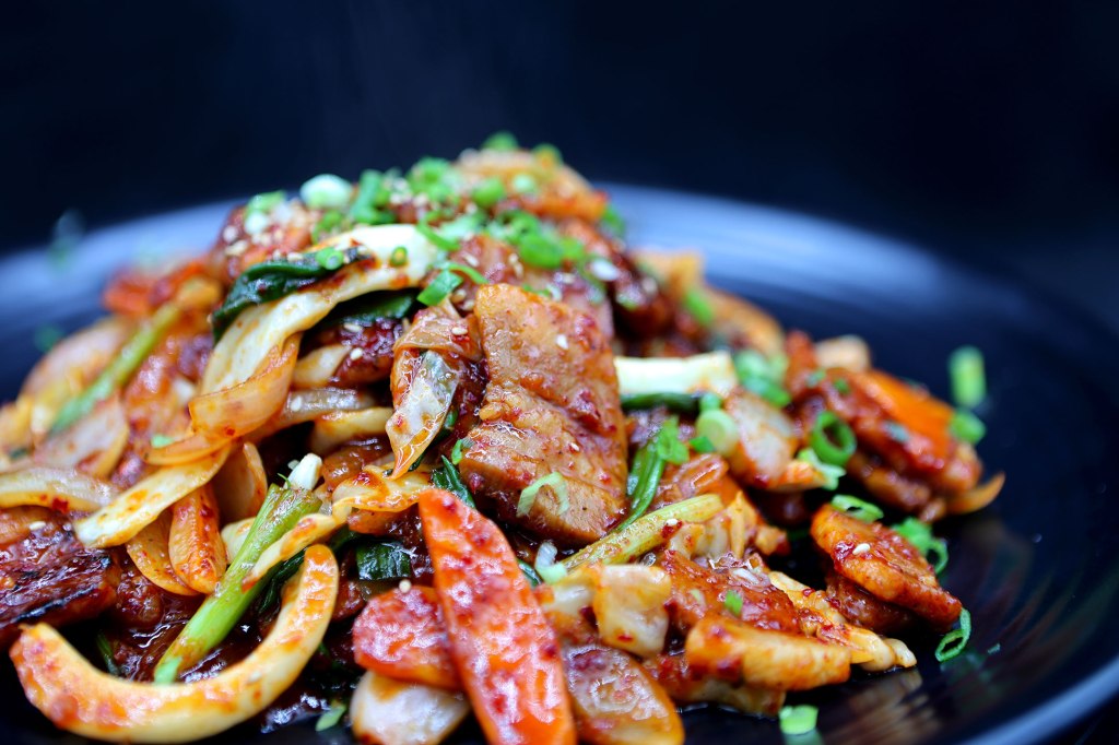 제육덮밥: 돼지고기와 각종 야채가 뜸뿍, 매콤달콤한 고추장소스의 중독적인 맛(금요일 및 예약주문가능)